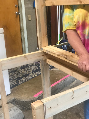 This past summer, my friend and I grabbed a bunch of spare wood and set to work building a potting table for my shed. The day was chilly and rainy but we hung out in the garage and got to work.
